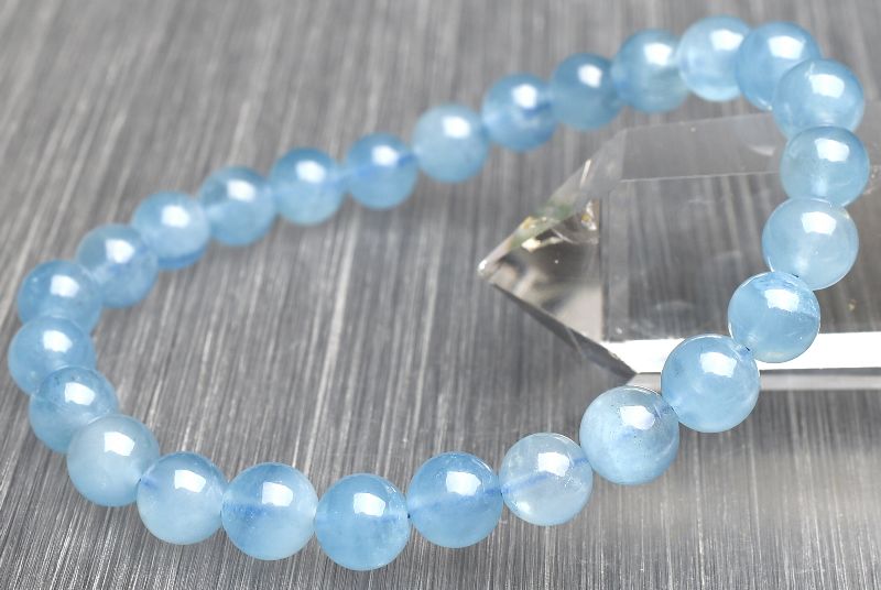 【1点物】透過性あり◇海色ブルー アクアマリン 7mm ブレスレット _U7944