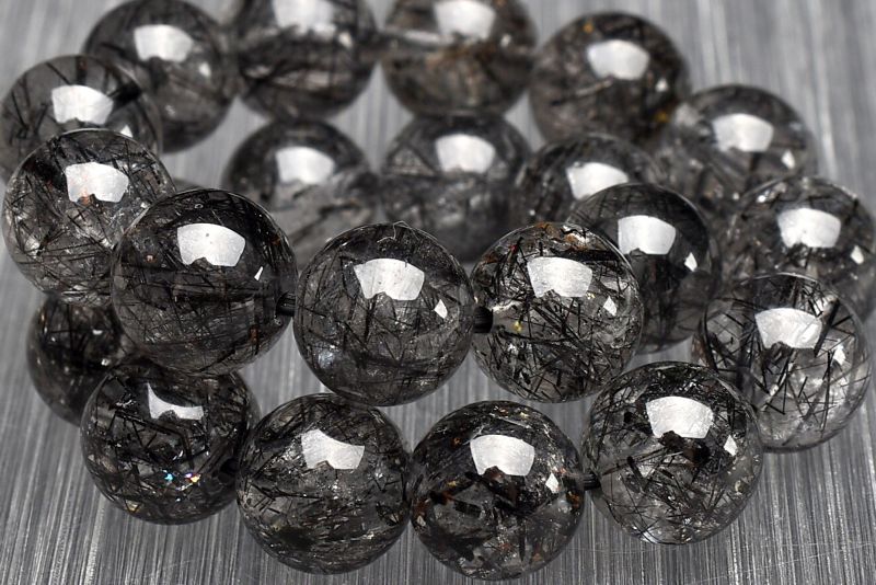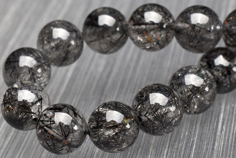 材質ブラックトルマリンインクォーツ 8.5mm 産地:ブラジル
