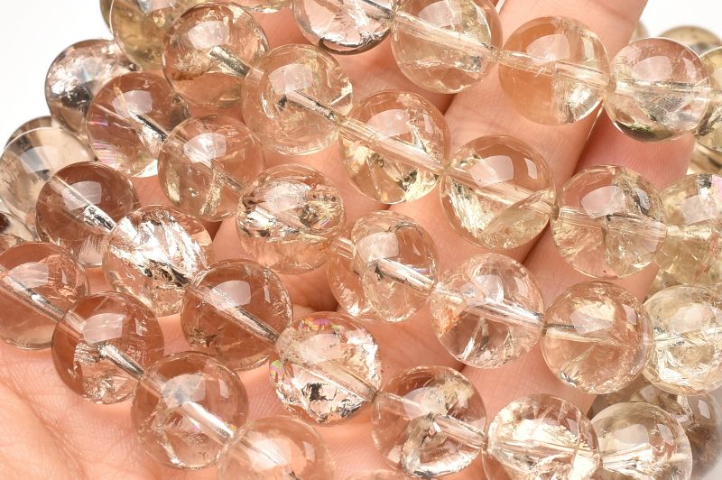 一般的に流通しているレモンクォーツは、スモーキークォーツに放射線処理をして黄色く変色させています。