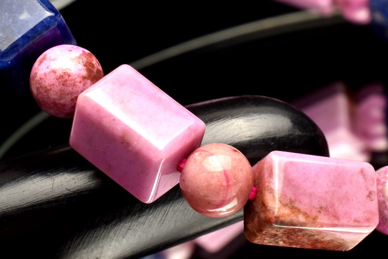 材質コバルトドロマイト(コバルトカルサイト)&ソーダライト 9-10x7(丸玉6)mm 産地:コンゴ共和国他