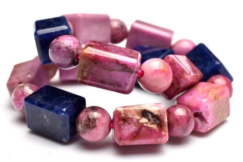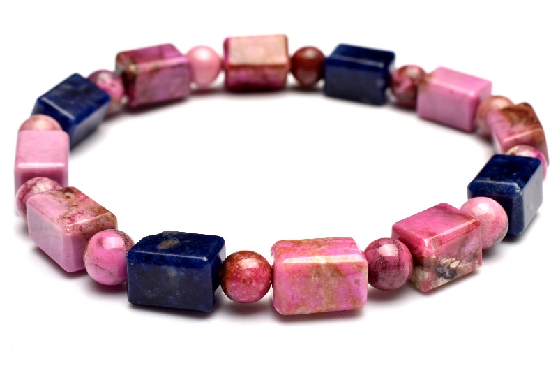 【1点物】5A級☆希少高発色 コバルトドロマイト(コバルトカルサイト)&ソーダライト 9-10x7(丸玉6)mm チューブカット ブレスレット _MC878