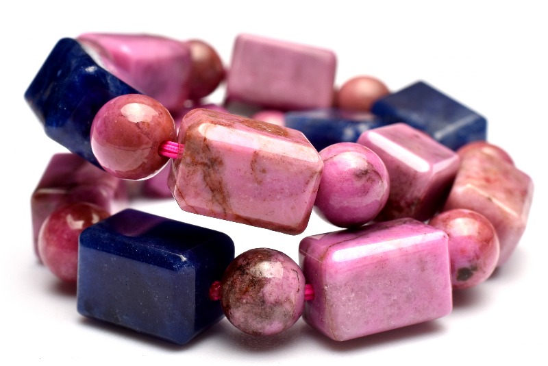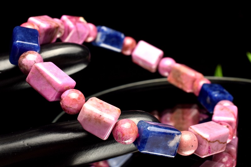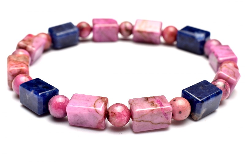 【1点物】5A級☆希少高発色 コバルトドロマイト(コバルトカルサイト)&ソーダライト 9-10x6.5(丸玉6)mm チューブカット ブレスレット _MC881