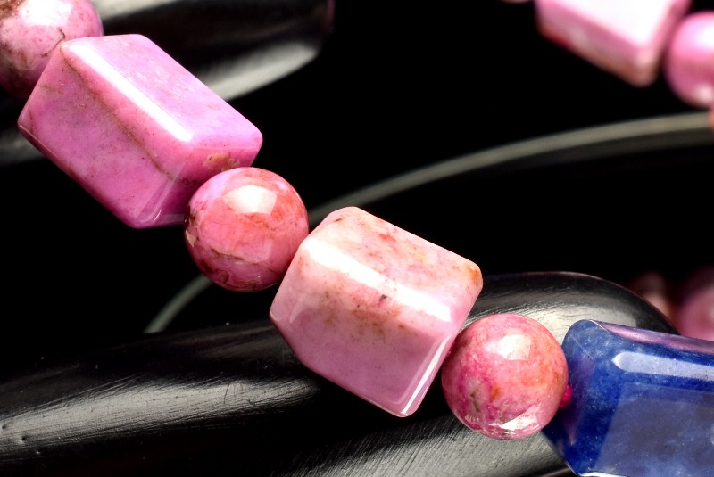 材質コバルトドロマイト(コバルトカルサイト)&ソーダライト 9-10x6.5(丸玉6)mm 産地:コンゴ共和国他