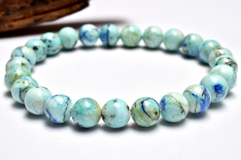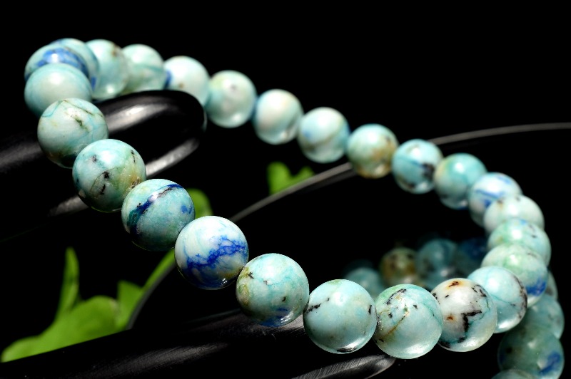 【1点物】幻想的な模様 アズライトインバライト 7.5mm ブレスレット _MC953
