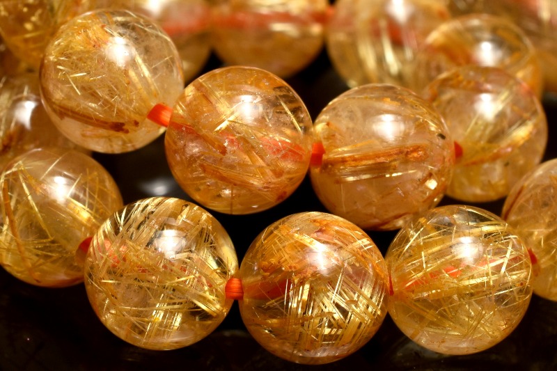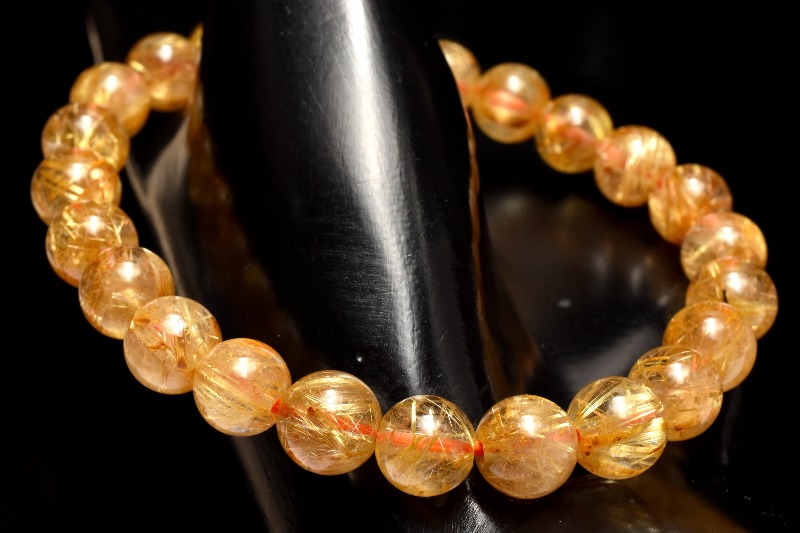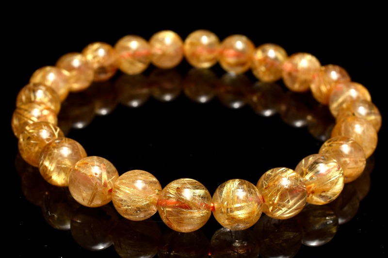 材質ゴールドタイチンルチルクォーツ 7.5mm 産地:ブラジル