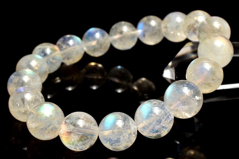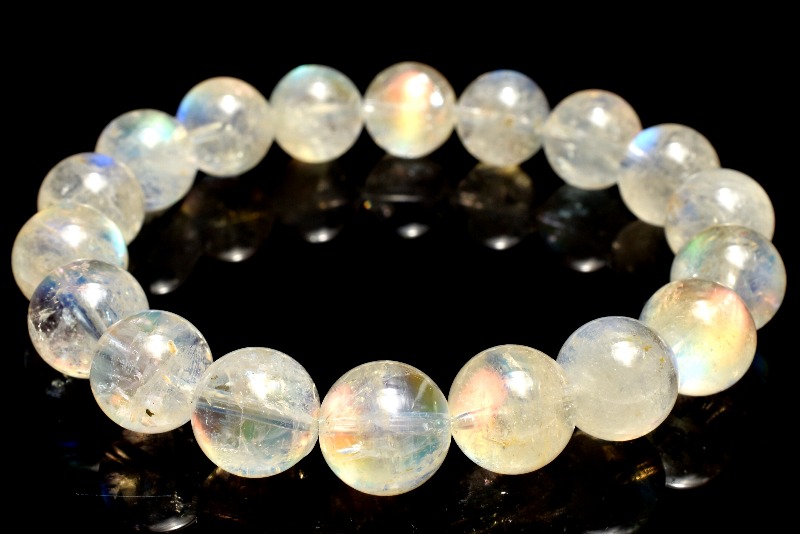 【1点物】AAAオーロラシラー☆マダガスカル産 レインボームーンストーン 10.5mm ブレスレット _MC1027