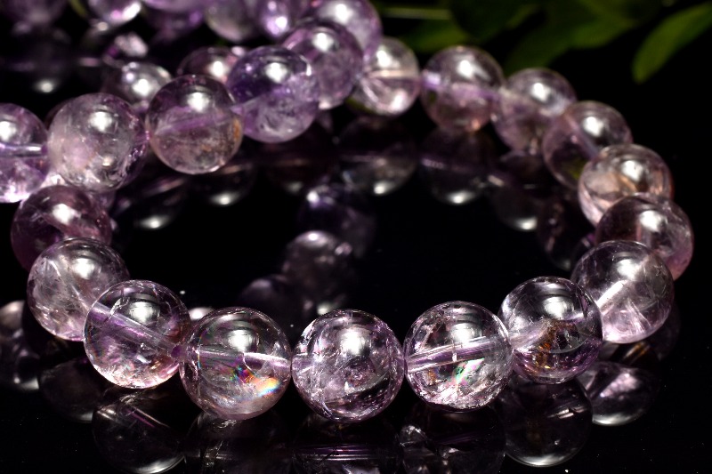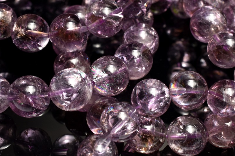 今回入荷分はアメジストの割合多めで、稀にクラックから虹が見れる珠もございます。
