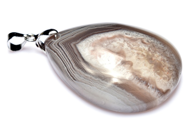 ほんのりとした透明感のある地石に美しい縞模様(しまもよう)が見られるのが、ボツワナアゲートの特徴です。同じ縞瑪瑙の仲間には、ブルーレースアゲート、サードオニキス、天眼石などがあります。