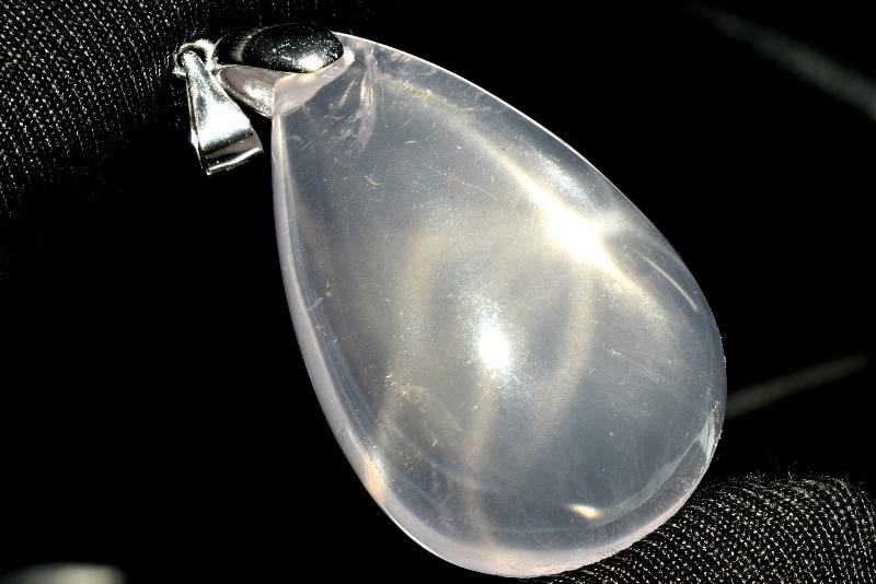 スターローズクォーツにあらわれるスター効果、またの名をアステリズムといいますが、このアステリズムにはエピアステリズムとダイアステリズムという2つの種類があります。これは反射光線によってスター効果がでるものがエピアステリズム、逆に透過光線によってスター効果がでるものがダイアステリズムとなります。簡単に言うと、前から照らしてスターがでるか、背面から光が入らないとスターがでないかということになります。スター効果を持つ代表的な石・ルビーやサファイアはエピアステリズムで、ローズクォーツの場合はダイアステリズムになります。エピアステリズムが表面に光が浮かぶように見えるのに対して、ダイアステリズムは石の中にスターが浮かんでいるように見えるため、神秘的です。普通に照明があたってもスターはでませんので、普通のローズクォーツと勘違いしてしまうこともあります.