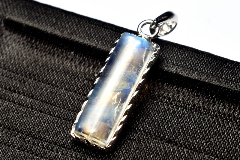 【1点物】Silver925◇強いシラー光彩 ブルームーンストーン 16x5mm レクタングル ペンダントトップ _PC7141
