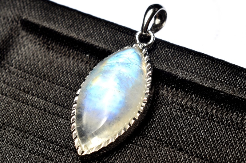 【1点物】Silver925◇強いシラー光彩 ブルームーンストーン 17x9mm マーキス ペンダントトップ _PC7146