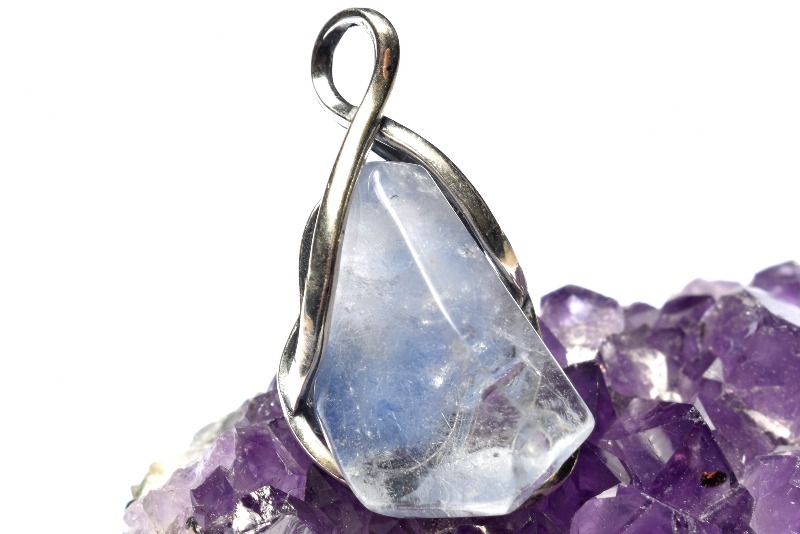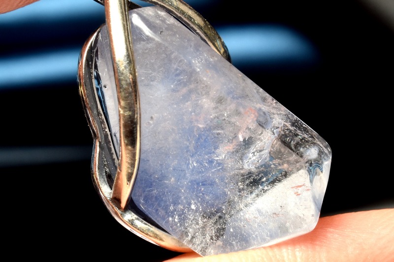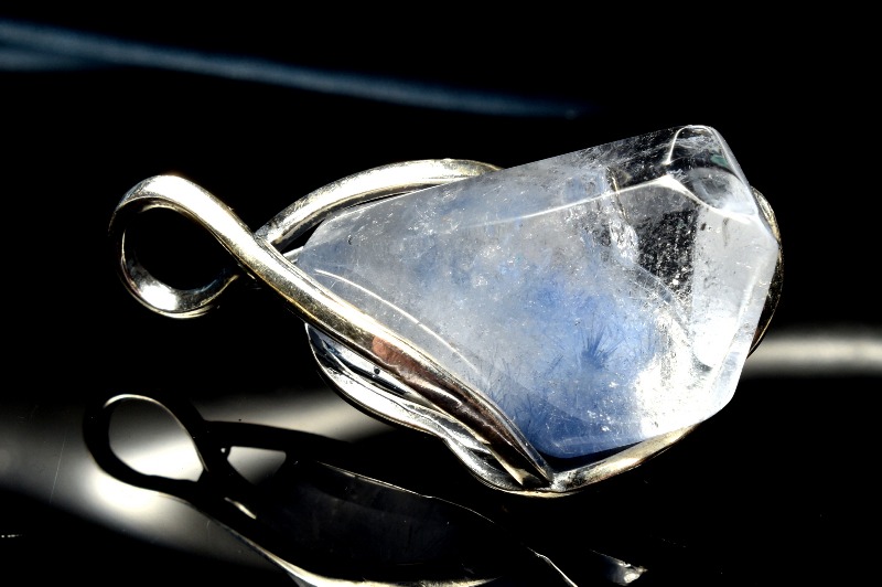 水晶の中でフワフワと青い華が咲いているような内包物が神秘的で美しいです。