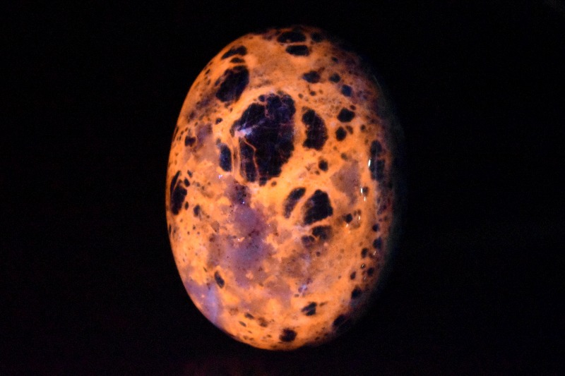 同じファトクロミズムの特徴をもつ石たちの中でも、ハックマナイトは紫外線を当ててから一定時間変色が持続するという珍しい性質があり、コレクターの間でも高い人気を誇ってます。