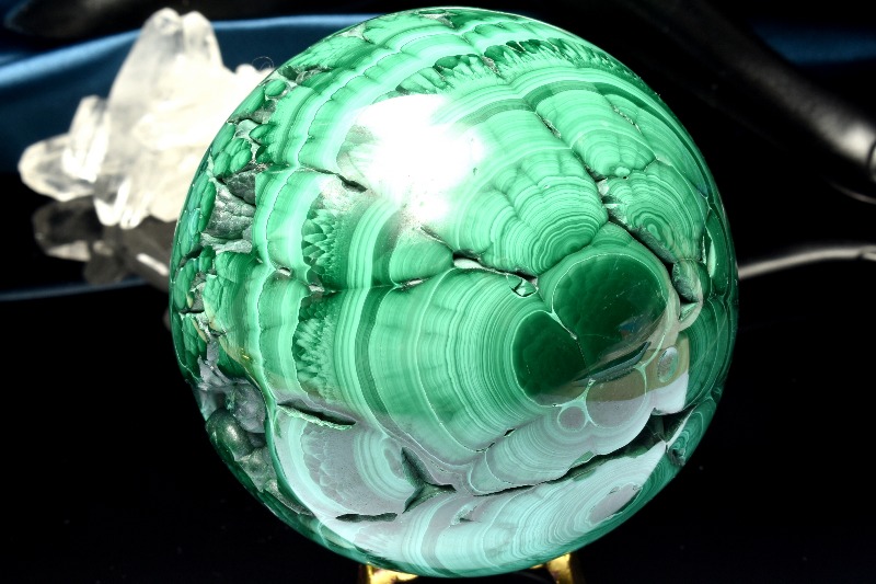 【1点物】高発色◇魔除け マラカイト(孔雀石) 73mm 丸玉(台座付き) スフィア _CG6794【宅急便のみ】