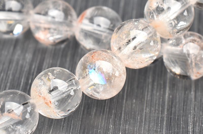 水晶の透明度も高く、稀にクラックから虹が見れる珠もございます。