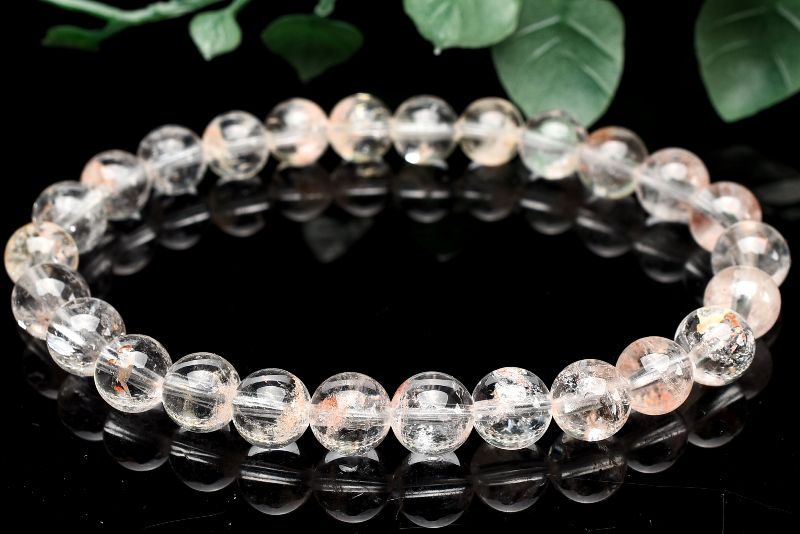 【1点物】ヘマタイトイン◇ピンク ホワイトファントムクォーツ 7mm ブレスレット _U7986