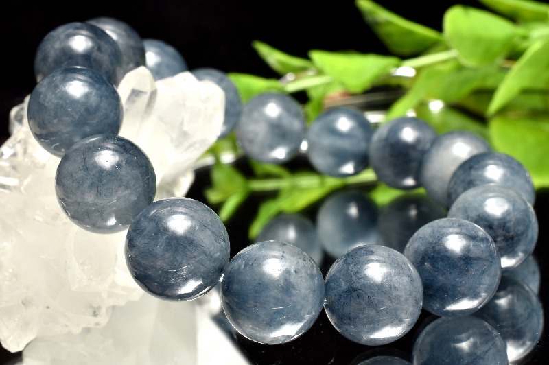 【1点物】希少カラー ブルーアンフィボールインクォーツ(インディゴライトインクォーツ) 13mm ブレスレット _MC1141
