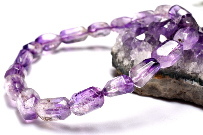 【1点物】内包の宝庫◇希少形状 スーパーセブンアメジスト 9-11x7-8mm 原石ラフカット ブレスレット _MC1195