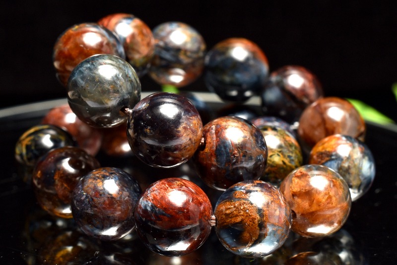 一般的にはタイガーアイ系の茶褐色が多いですが、ブルータイガーの青系もあり、茶と青の混じったものもあります。