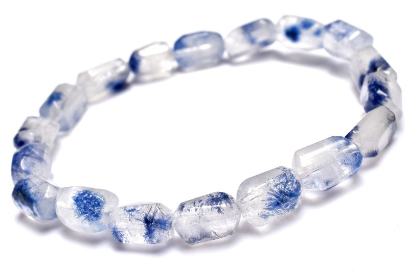 【1点物】高発色◇希少形状 デュモルチェライトインクォーツ 8-12x6-7mm 原石ラフカット ブレスレット _MC1265