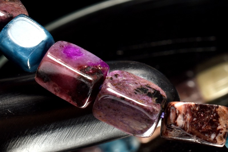 【1点物】紫の濃淡が織りなす上級の美 スギライト(杉石) 7-8x5mm チューブカット ブレスレット _MC1284