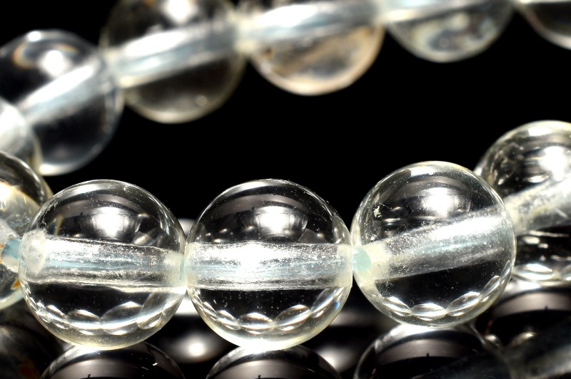 稀に虹入りの珠や、白雲母(モスコバイト)やトルマリンなどの内包物も見られます。