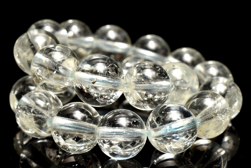 稀に虹入りの珠や、白雲母(モスコバイト)やトルマリンなどの内包物も見られます。