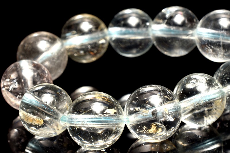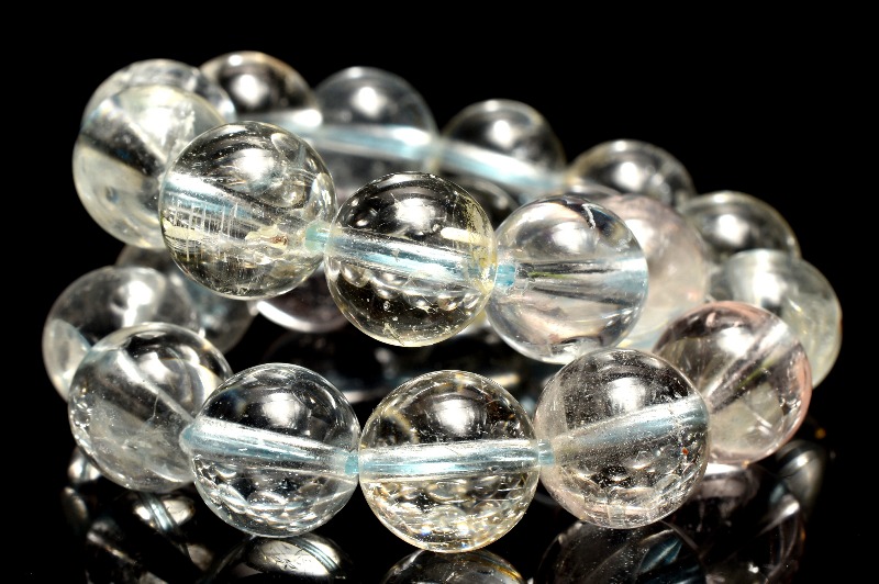 稀に虹入りの珠や、白雲母(モスコバイト)やトルマリンなどの内包物も見られます。