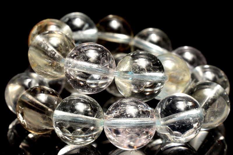 稀に虹入りの珠や、白雲母(モスコバイト)やトルマリンなどの内包物も見られます。