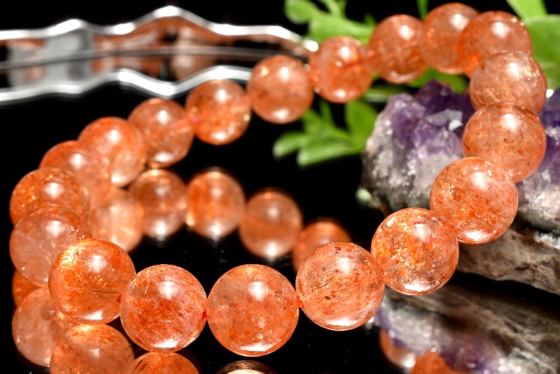 【1点物】高発色◇アルーシャ産 フェルドスパーサンストーン 10.5mm ブレスレット _MC1313