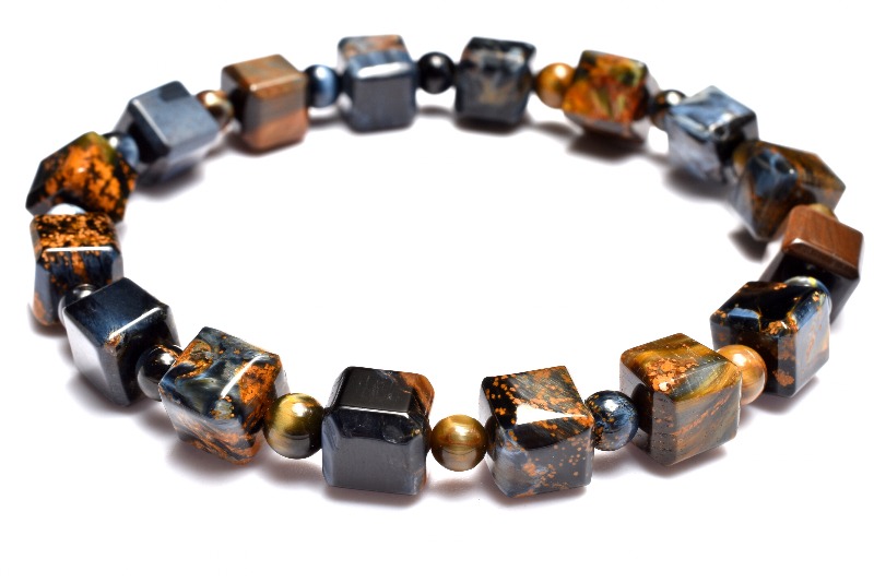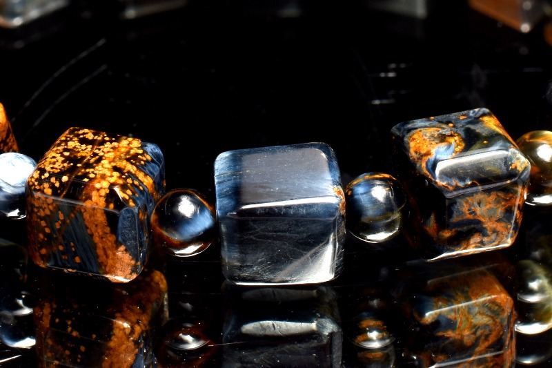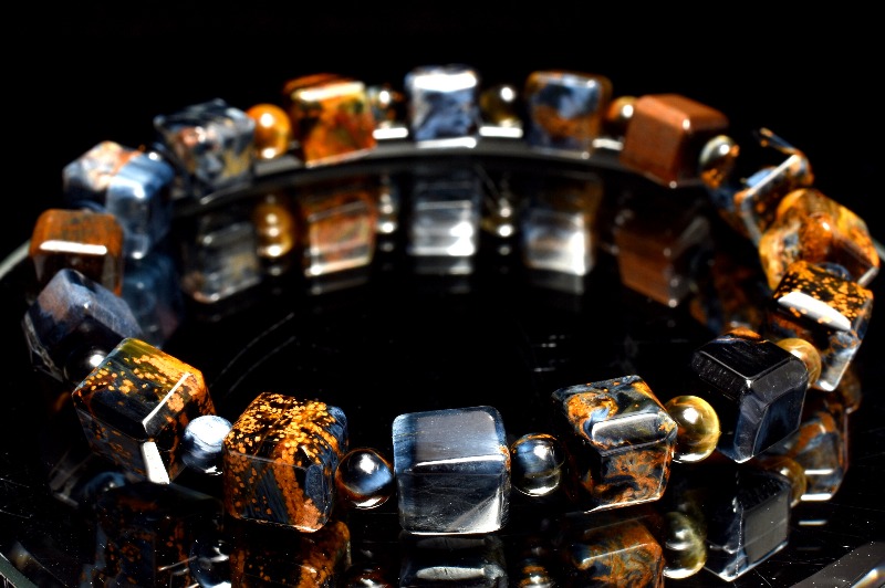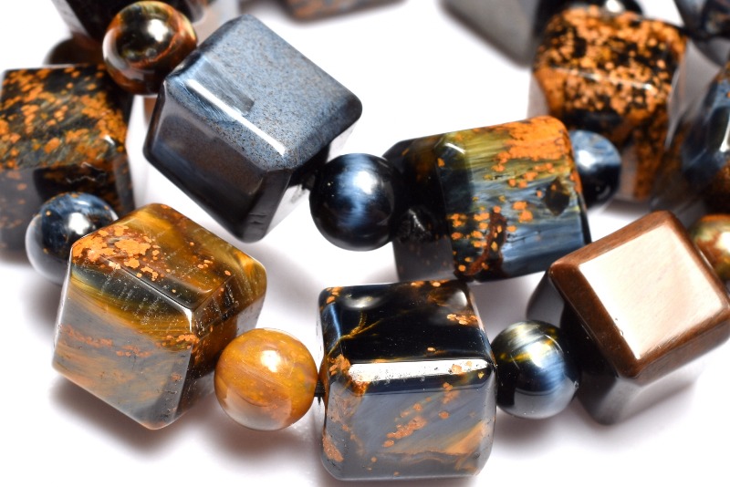 一般的にはタイガーアイ系の茶褐色が多いですが、ブルータイガーの青系もあり、茶と青の混じったものもあります。