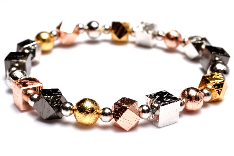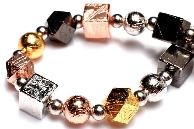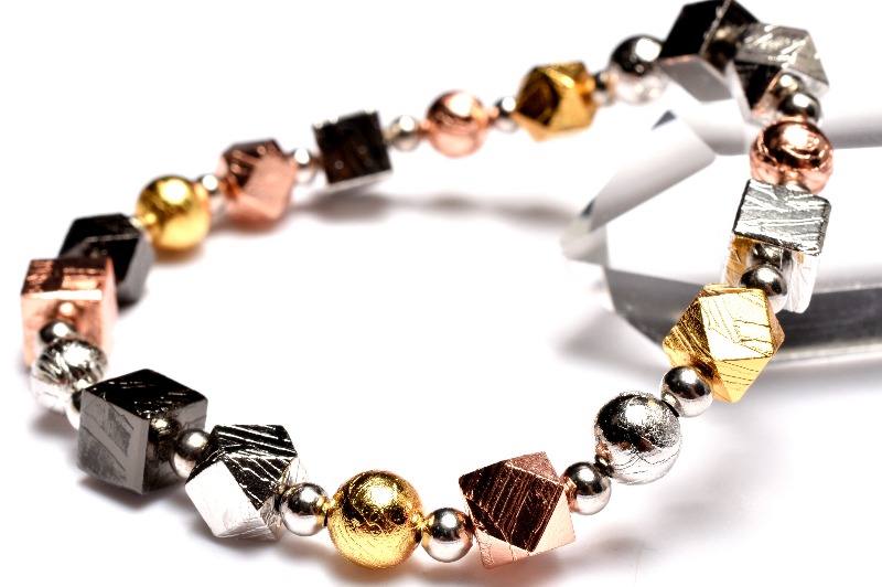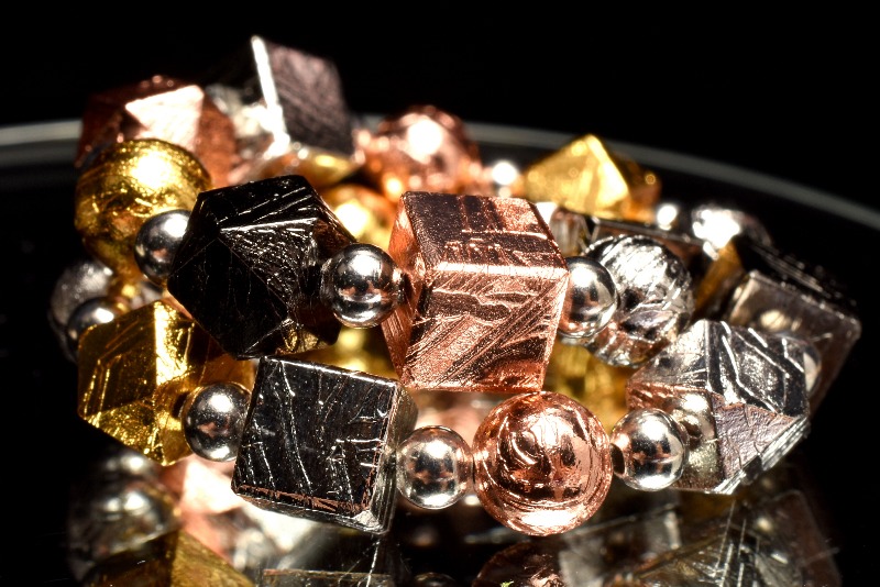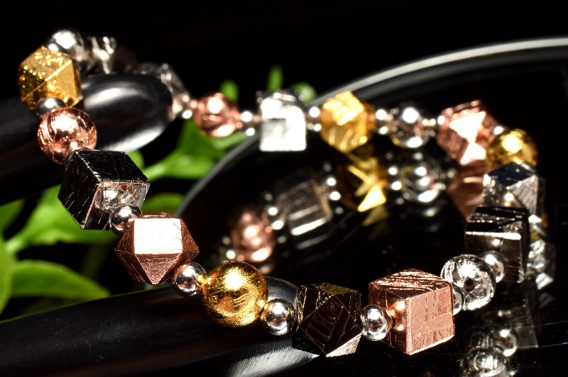 【1点物】宇宙からの贈り物◇MIX メテオライト(アルタイ隕石) 6(丸玉3.5)mm ブレスレット _MC1386