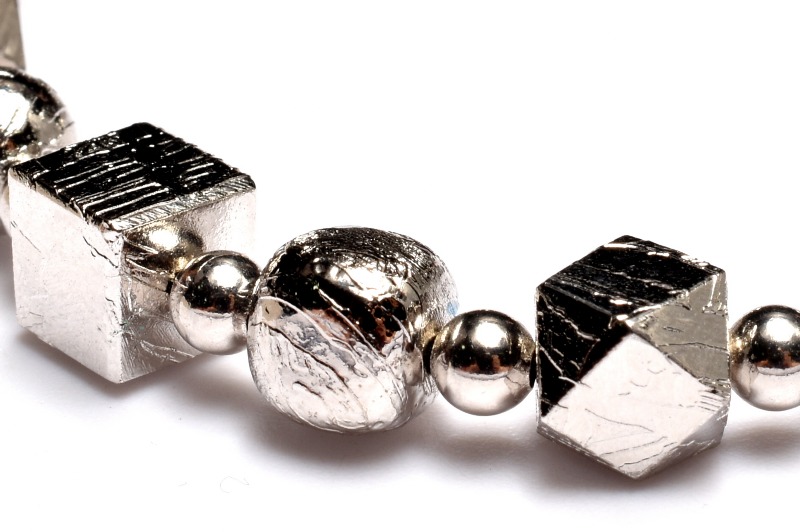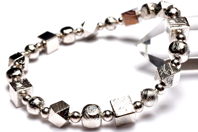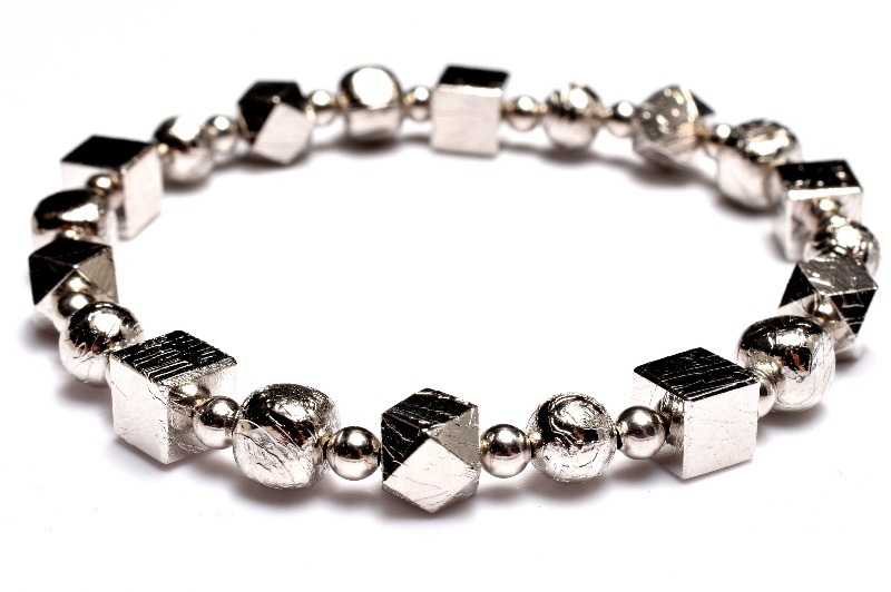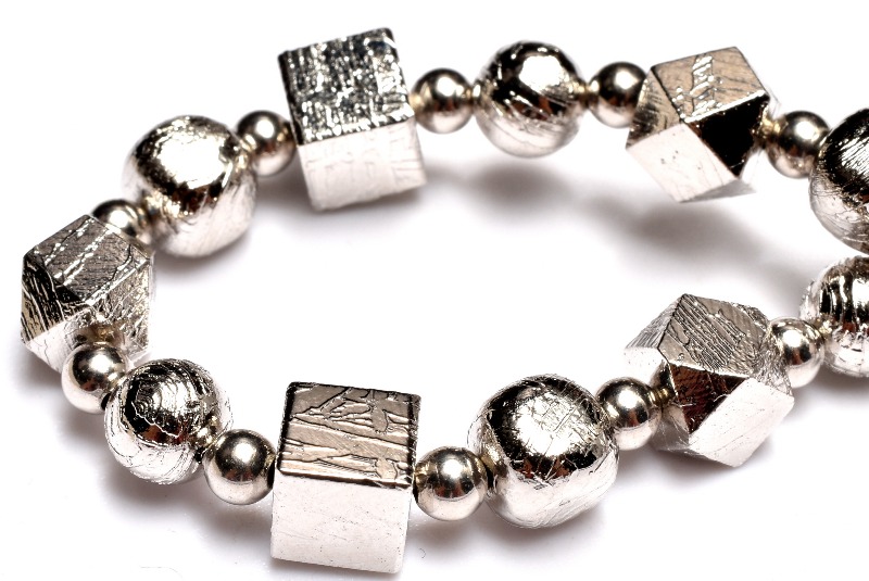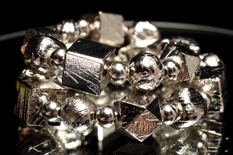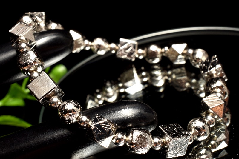 【1点物】宇宙からの贈り物 メテオライト(アルタイ隕石) 6(丸玉3.5)mm シルバーコーティング ブレスレット _MC1389