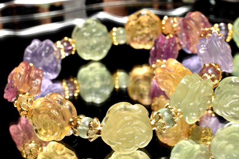 フローライトは、紫、青、緑、黄、桃、無色などの透明感のある多彩な色を持ち、幻想的な石です。