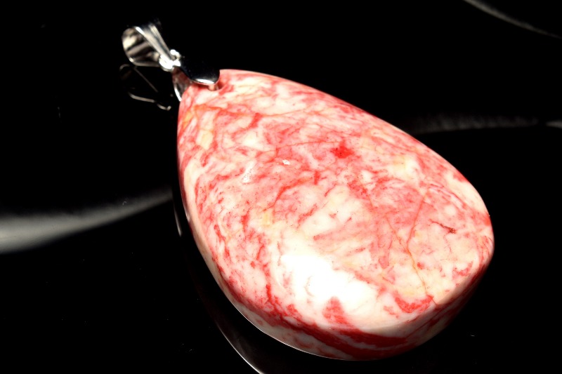 【1点物】Silver925◇高発色 シナバー辰砂 34x25mm ドロップ ペンダントトップ _PC7332