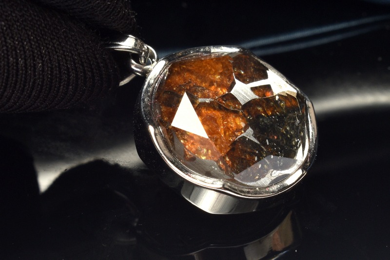 この隕石は鉄隕石と石質隕石の中間にあたり、星のマントル部分が隕石として落下したと思われるもので、石鉄隕石に分類されます。