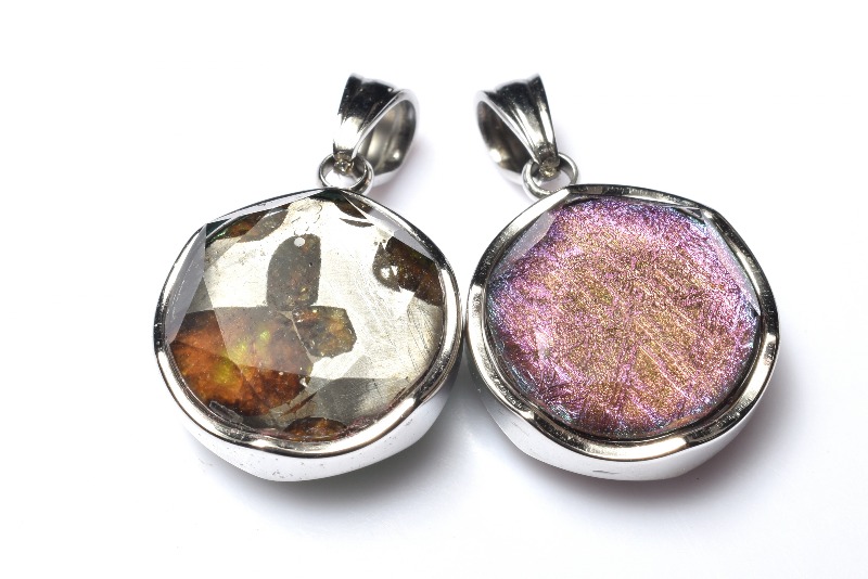 材質ギベオン&パラサイト隕石 15mm(座金:ステンレス) 産地:ロシア他