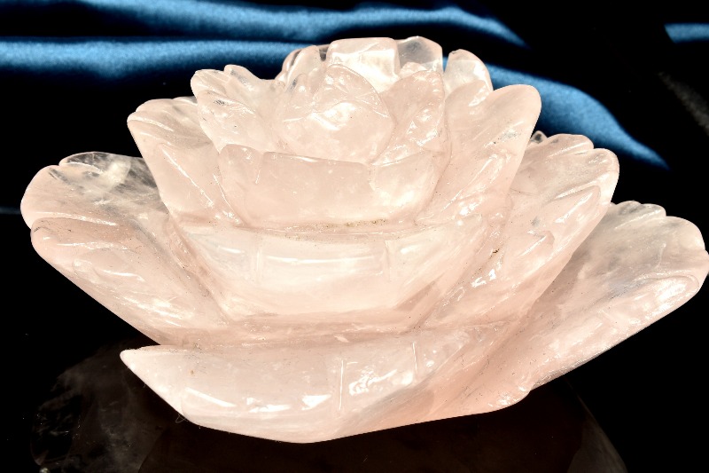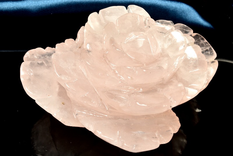 【1点物】繊細彫刻 ローズクォーツ 104x102x41mm 花彫刻 置物 _CG6840【宅急便のみ】