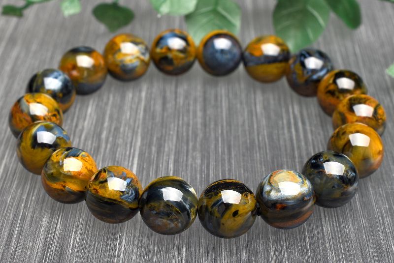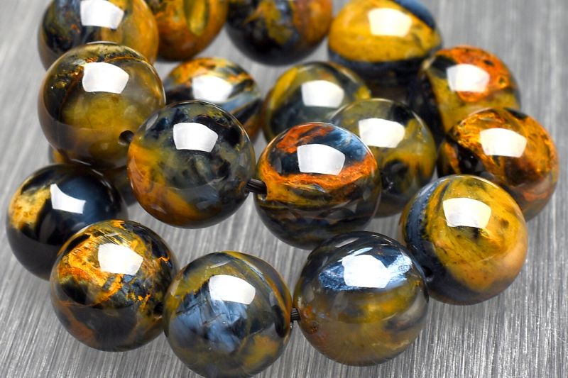 一般的にはタイガーアイ系の茶褐色が多いですが、ブルータイガーの青系もあり、茶と青の混じったものもあります。