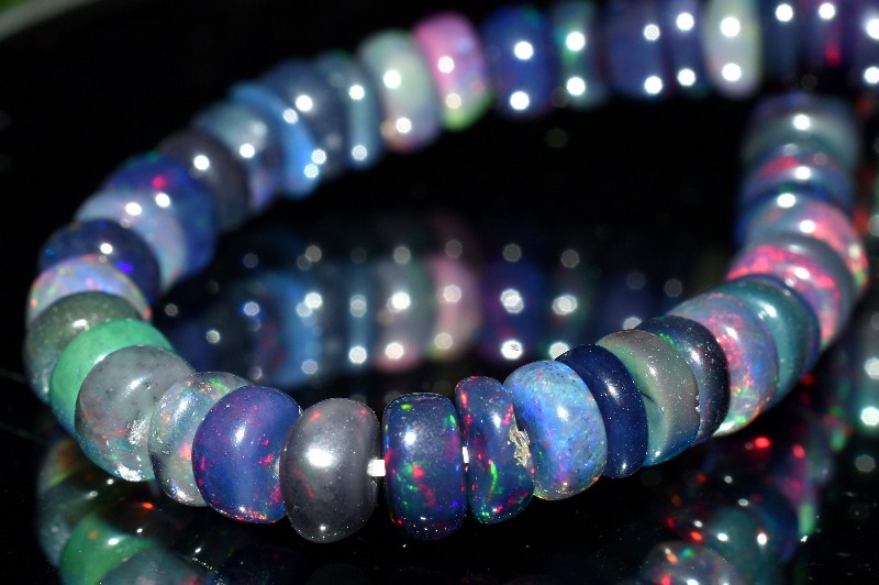 【1点物】AA☆エチオピア産 プレシャスブラックオパール 1.5-2.5x4.5mm ボタン ブレスレット _MC1672