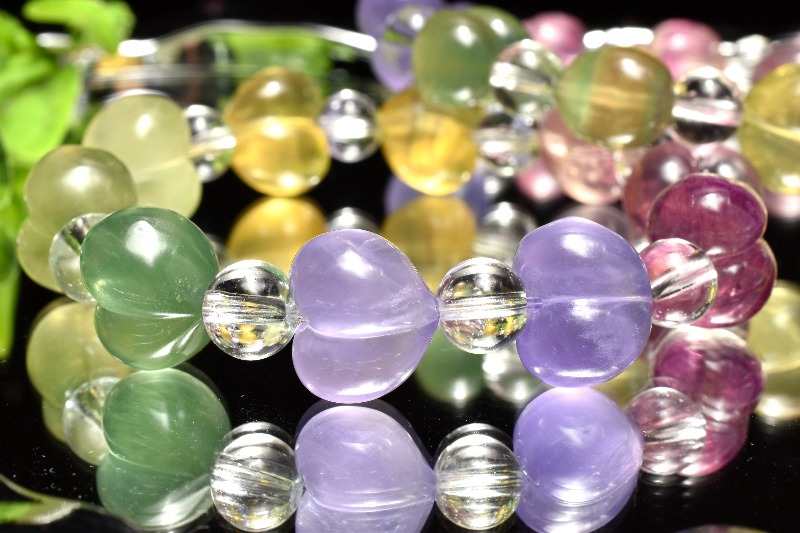 1つの石が複数の色を持つバイカラーのものもあり、「レインボーフローライト」と呼ばれます。