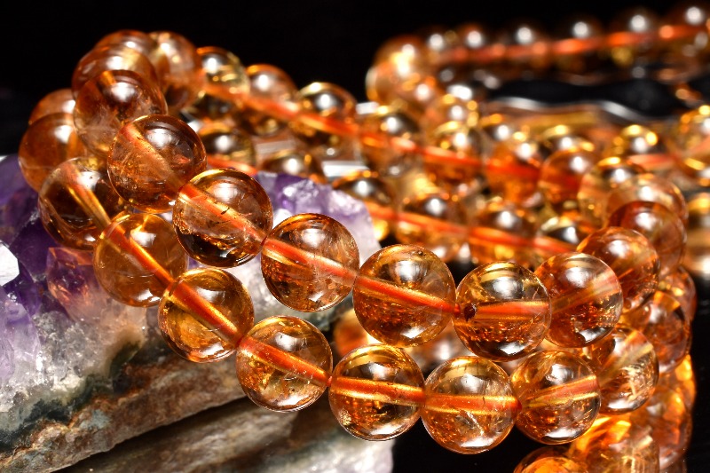 くっきり山入り! ファントムシトリン 7.5mm ブレスレット 1個売り _BG6195-75