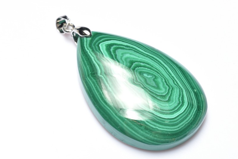 【1点物】天眼模様 マラカイト(孔雀石) 37x25mm ドロップ ペンダントトップ _PC7484