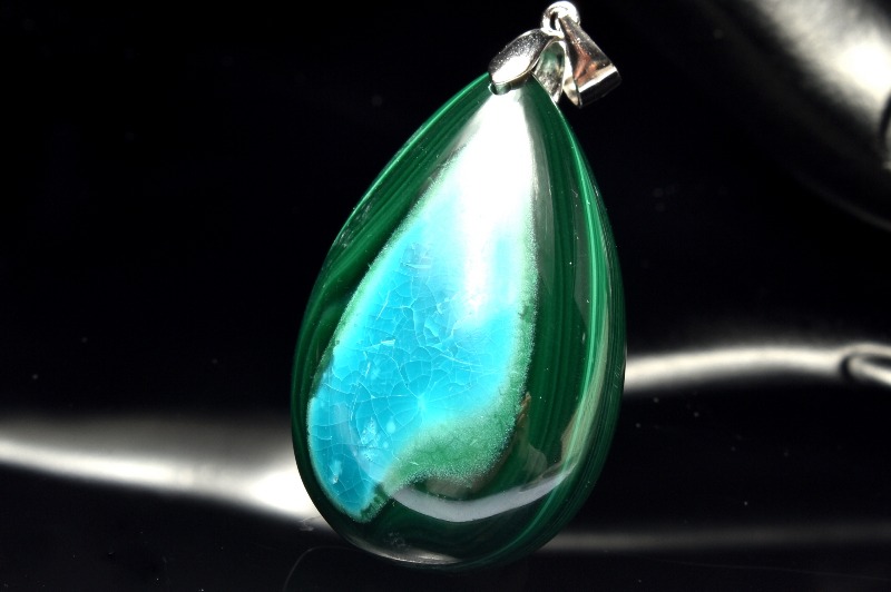 【1点物】Silver925◇希少 クリソコラインマラカイト 33x21mm ドロップ ペンダントトップ _PC7535