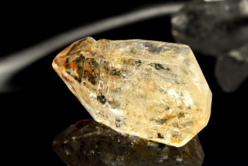 水晶が成長していく過程で蛍光性をもった美しいイエローのオイル(石油)が取り込まれ生成された非常に希少な石です。