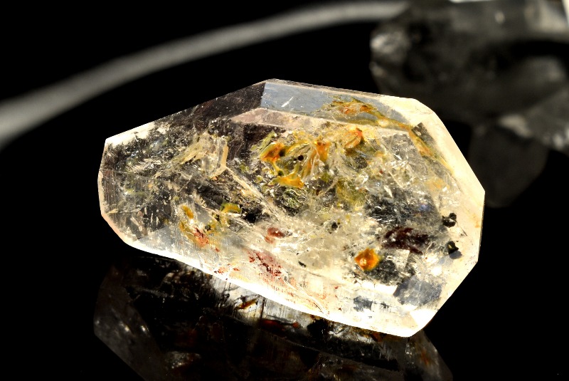 水晶が成長していく過程で蛍光性をもった美しいイエローのオイル(石油)が取り込まれ生成された非常に希少な石です。