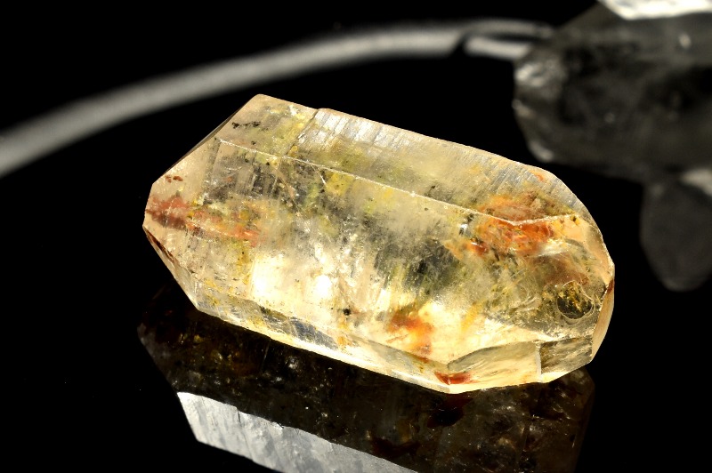 水晶が成長していく過程で蛍光性をもった美しいイエローのオイル(石油)が取り込まれ生成された非常に希少な石です。