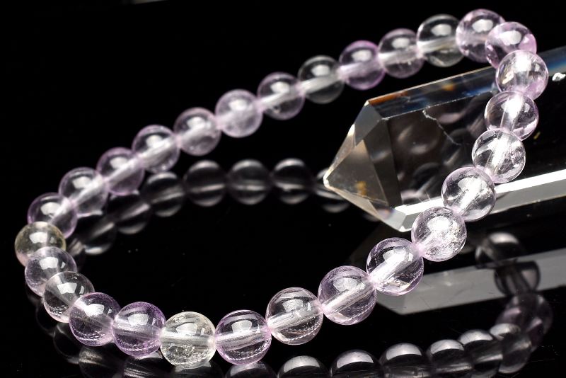 【1点物】AAA+☆透明無垢 クンツァイト 7mm ブレスレット _U8242
