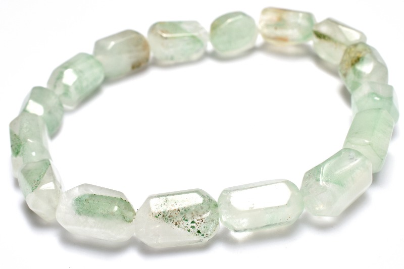 【1点物】山入り! エメラルドグリーンファントムクォーツ 10-13x6.5-8.5mm 原石ラフカット ブレスレット _MC1885