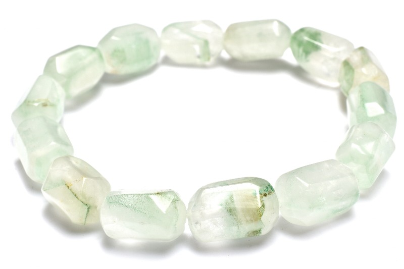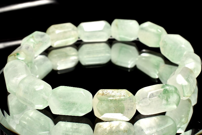 【1点物】山入り! エメラルドグリーンファントムクォーツ 13.5-16x8-10mm 原石ラフカット ブレスレット _MC1888